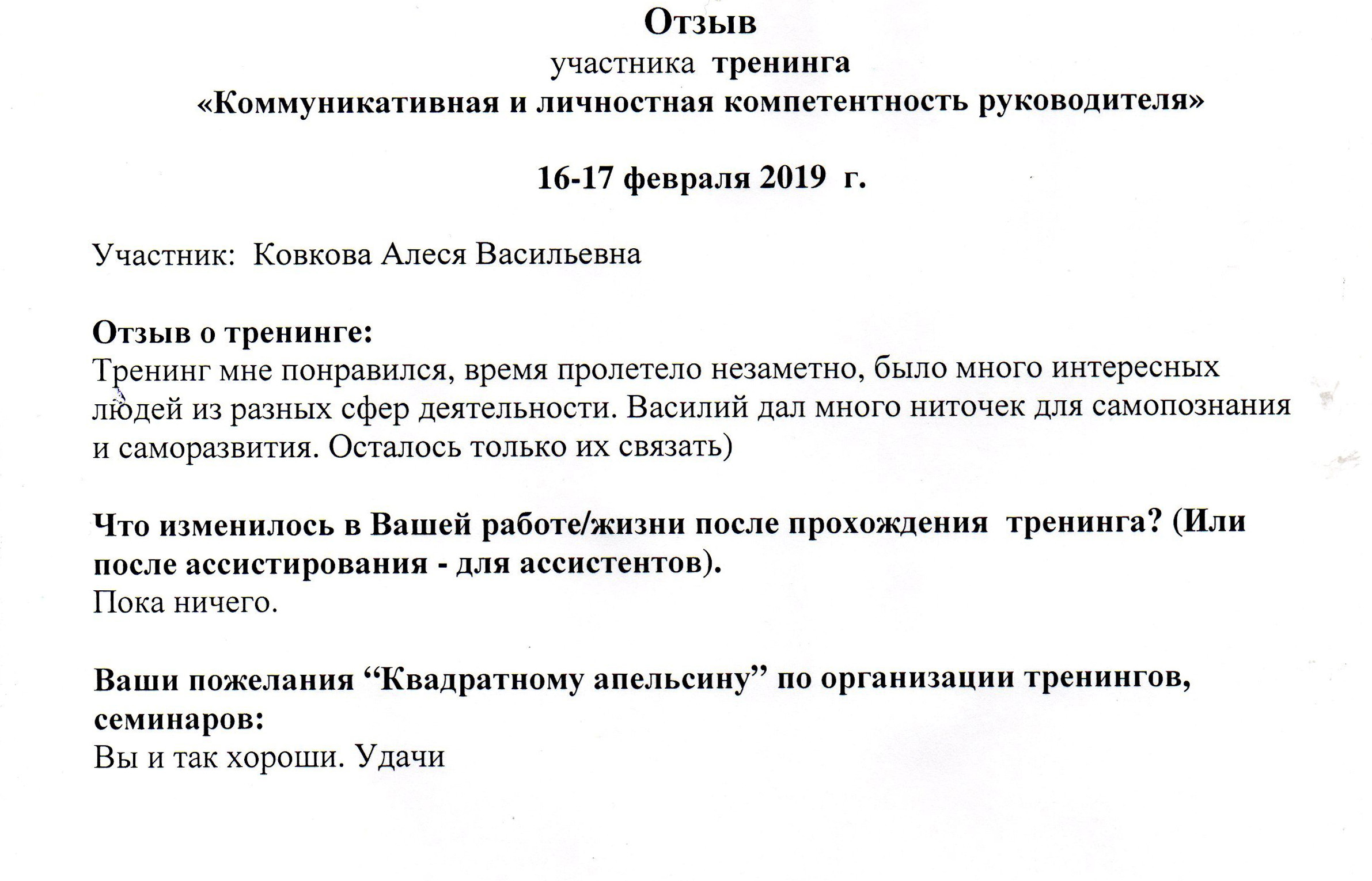 У нас собраны сотни отзывов о тренингах в письменном виде, несколько толстенных папок с начала работы тренингового центра в 2004 году, однако в связи с изменением сайта в 2016 году, мы залили на сайт лишь малую часть отзывов.